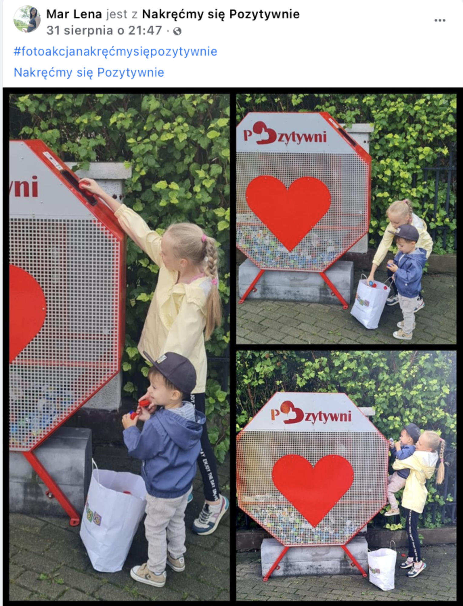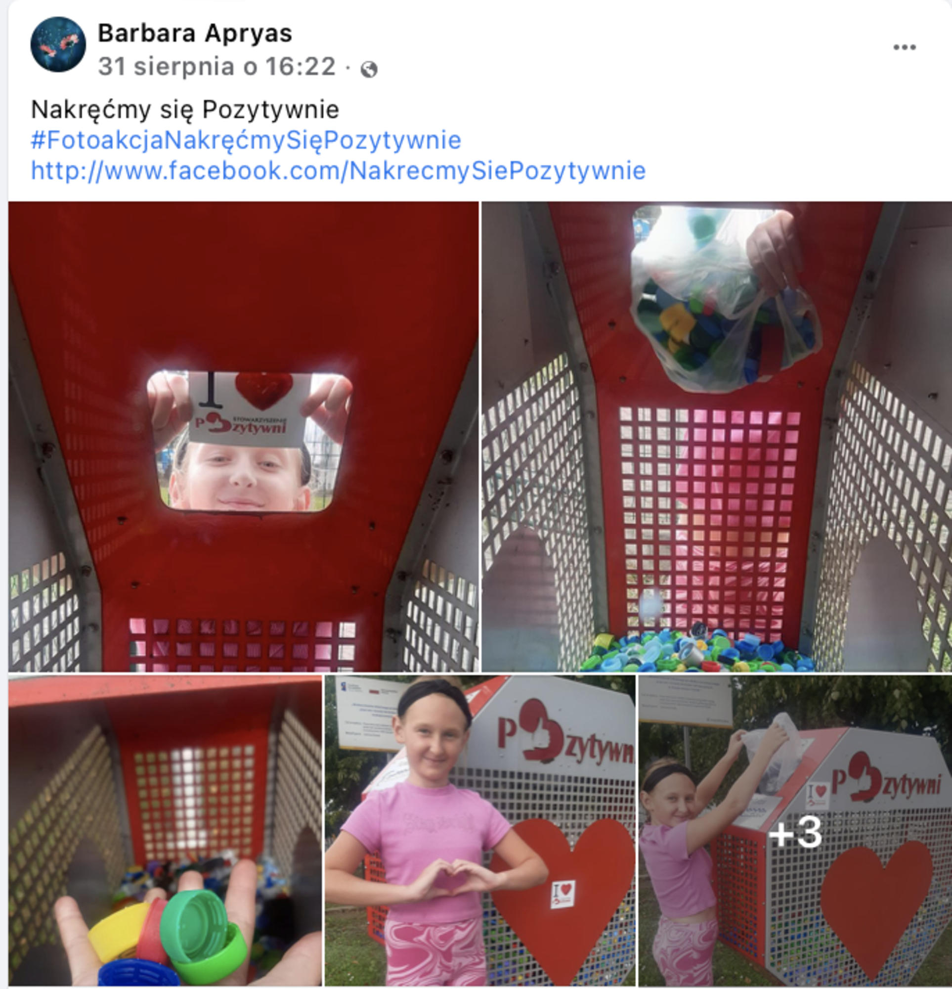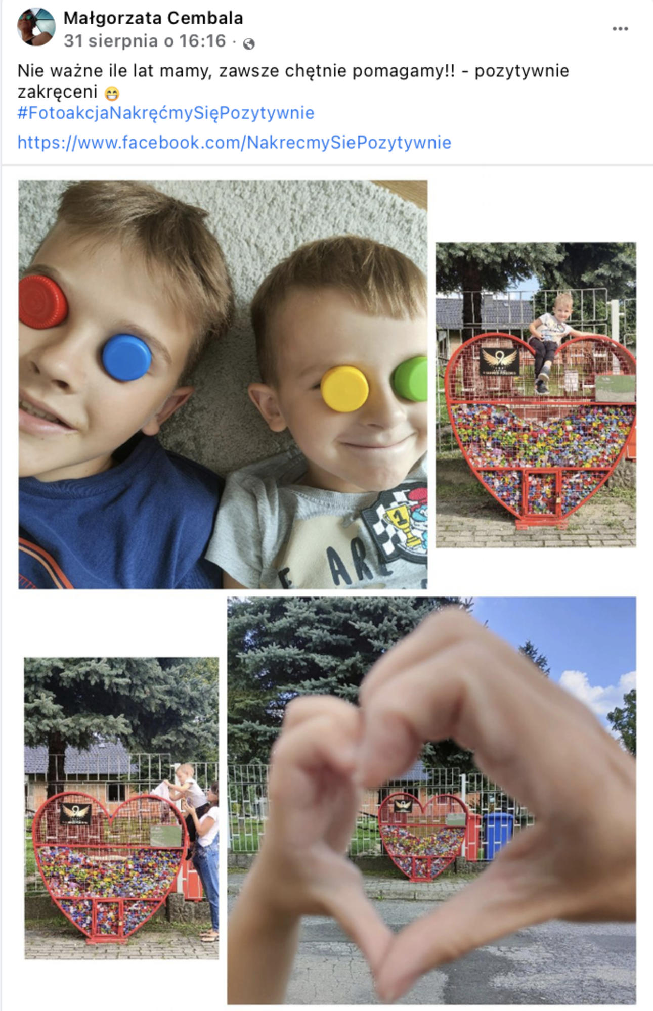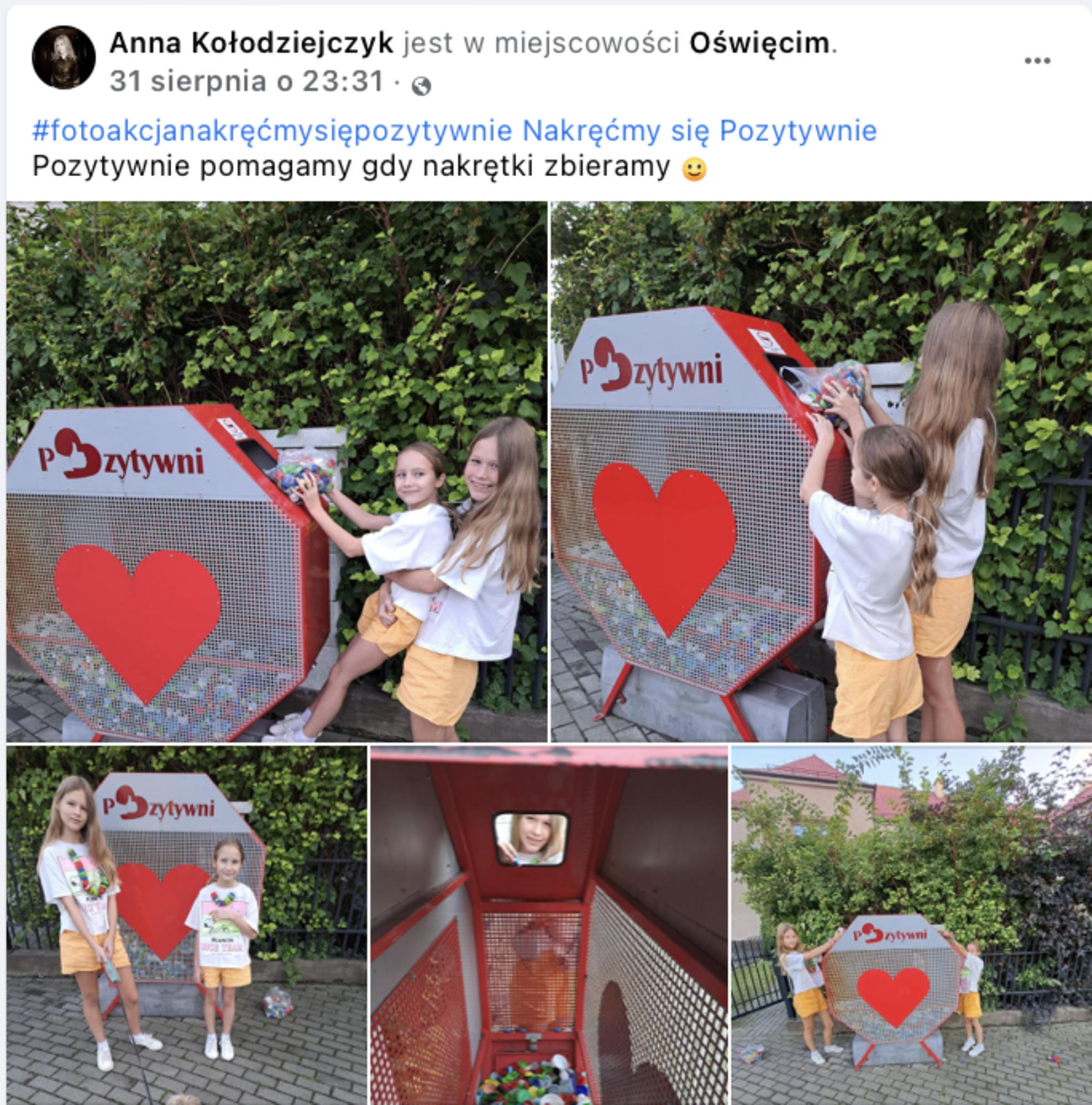 Wasze zdjęcia będziemy publikować na naszym profilu Nakręćmy się Pozytywnie przypominając innym, jak ważne jest zbieranie plastikowych nakrętek 🙂