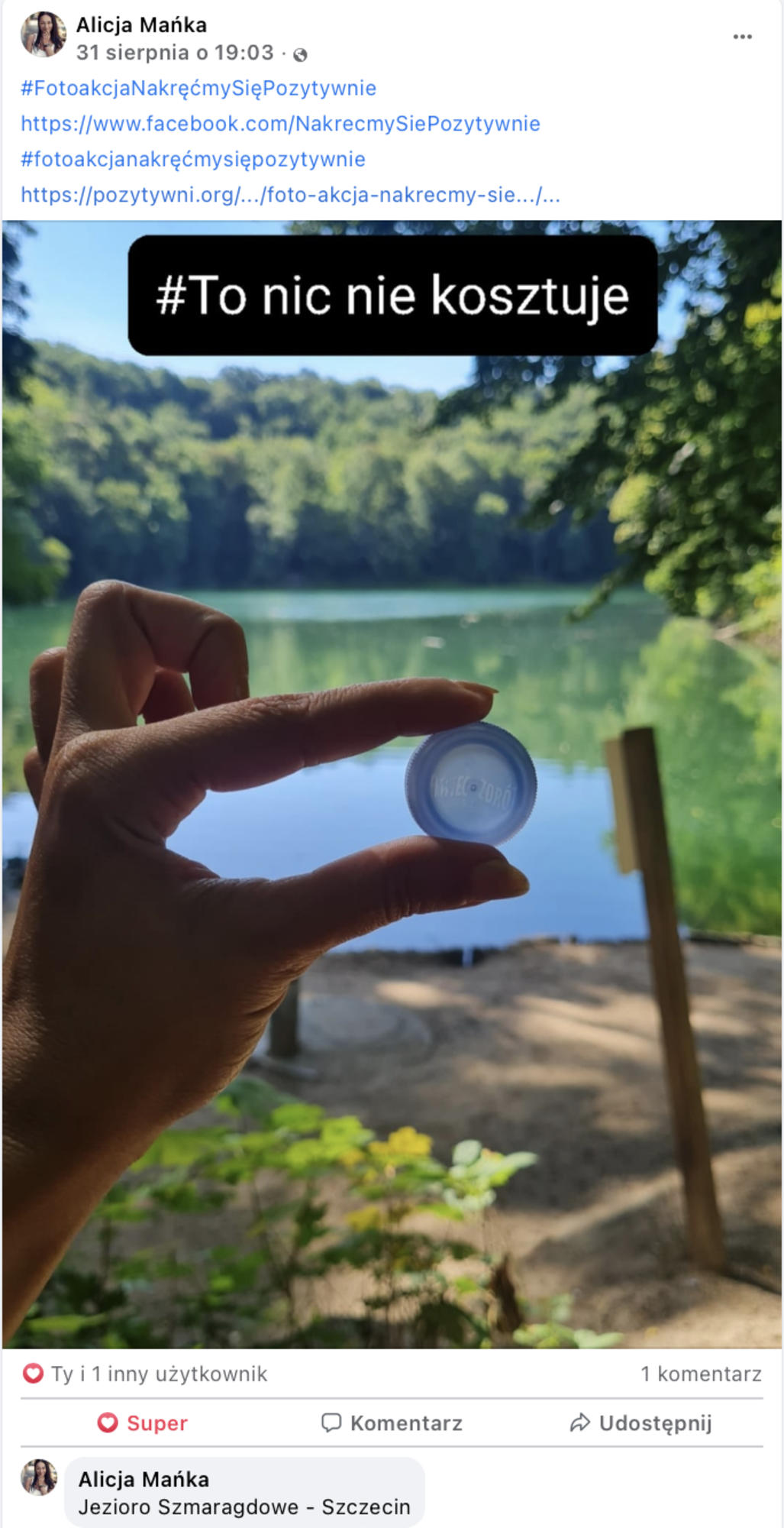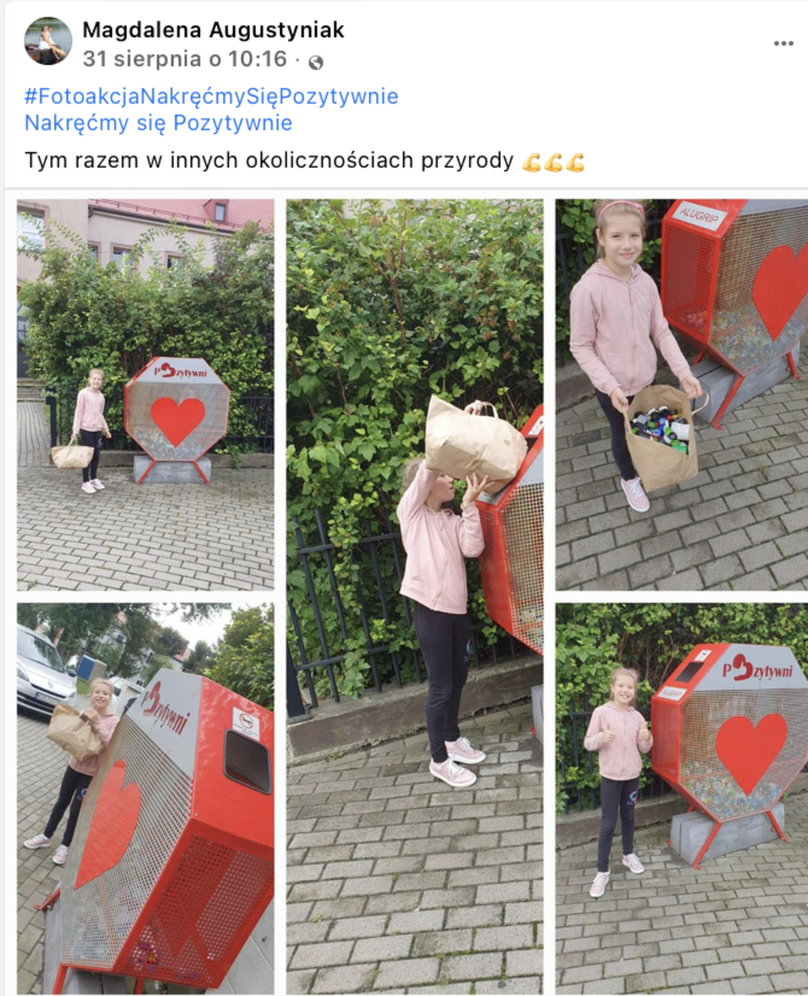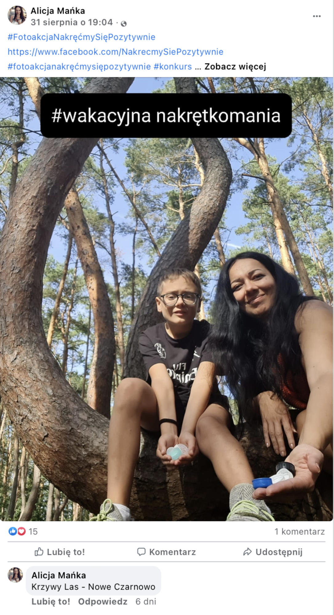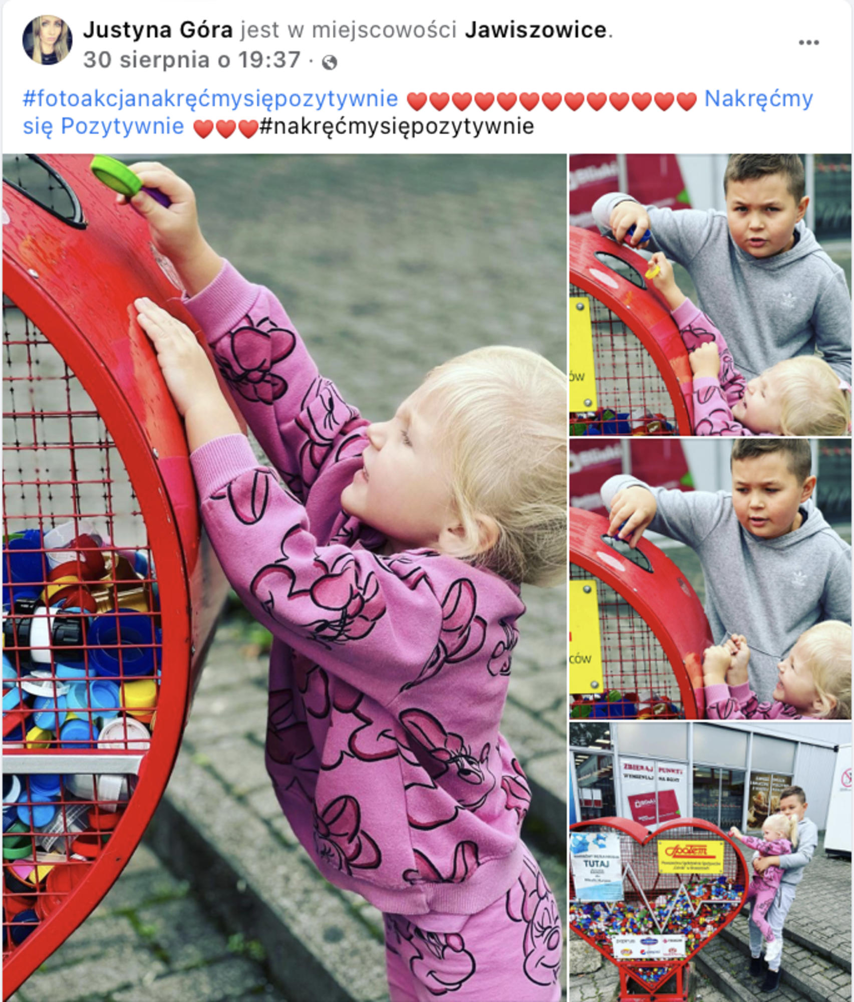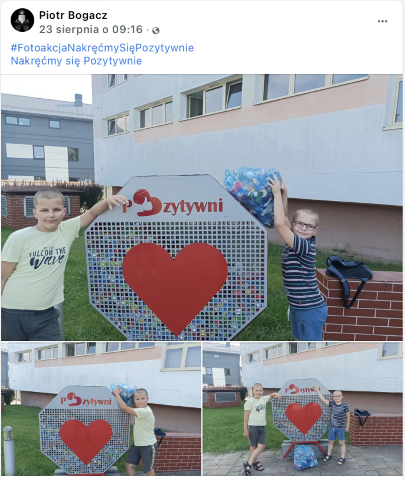 Wasze zdjęcia będziemy publikować na naszym profilu Nakręćmy się Pozytywnie przypominając innym, jak ważne jest zbieranie plastikowych nakrętek 🙂